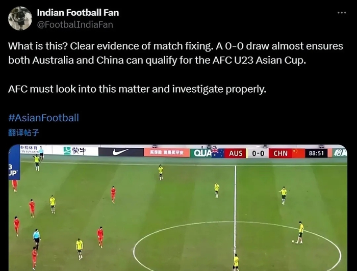 U23国足和澳大利亚踢假球?亚足联如此回应,这下有结果了
